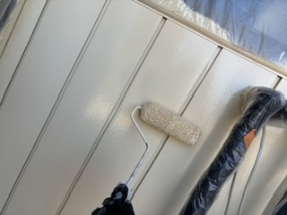 鉄板サイディング 上塗り中