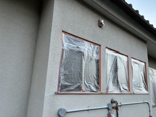 長野県下伊那郡松川町にて外壁塗装工事④ 漆喰•外壁 塗装 養生作業