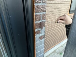 ベランダ外壁 タイル面 上塗り中