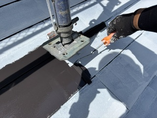 鼻隠し•破風の中塗り後、屋根のジャッキ下部分の上塗りを行いました!