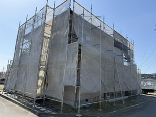 長野県飯田市にて外壁塗装工事① 仮設足場