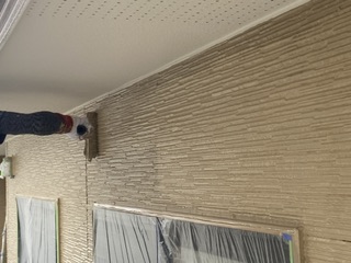 帯の下塗り後、2階外壁の上塗りを進めていきました!
