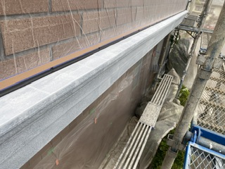 2階外壁の中塗り後に、帯の状態が良くなかったので、もう一度、下塗りを行いました!